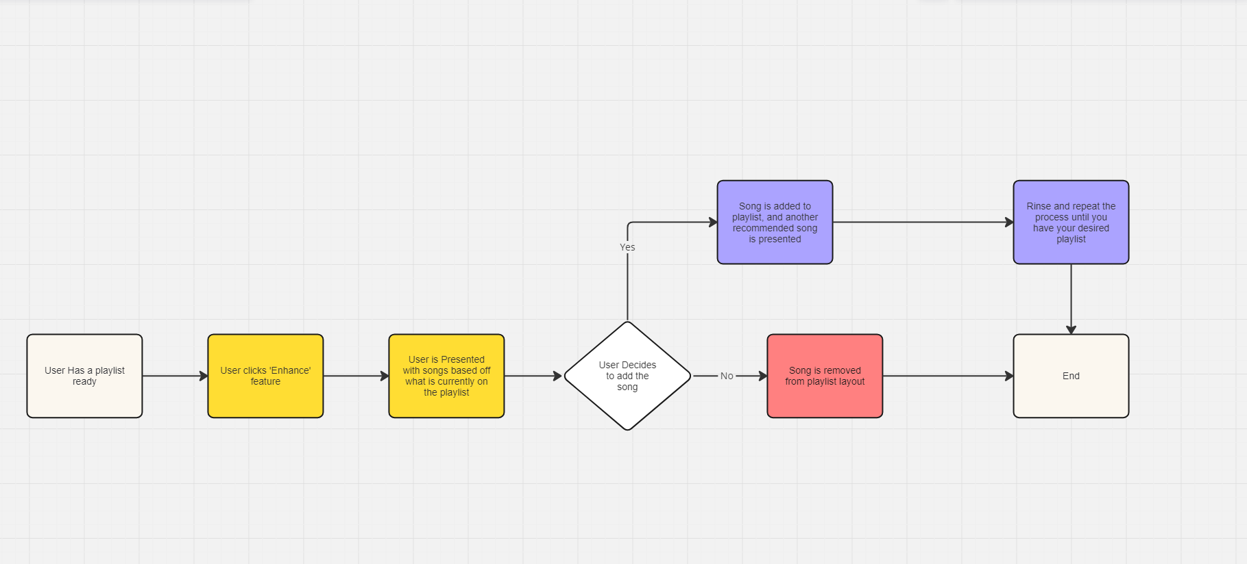 The ‘Enhance’ feature doesn’t work how it is intended. With the use of the ‘Enhance’ feature, you want to find something new, or enhance the current state of your playlist. My participants noticed that the feature isn’t very accurate when implementing new music, it has a knack for playing a song that doesn’t fit the playlist mood, or general genre.